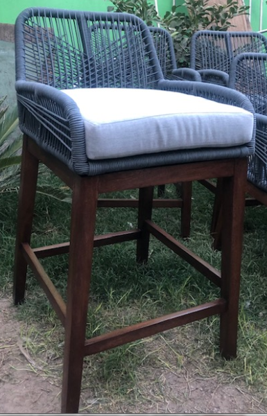 Banco mod. DALILA: No te dejes engañar, sus descansa brazos no te dejaran ir. Base MADERA / Armazón ALUMINIO / Tejido NYLON PLANO / Cojín: SUNBRELLA