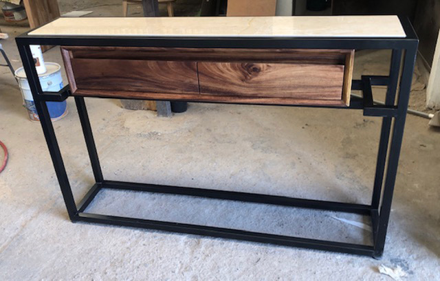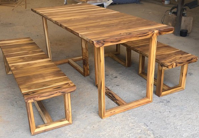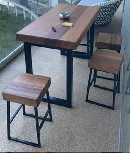 Mesa & Banca: Superficie en Madera de PAROTA y base en herrería pintada al horno
