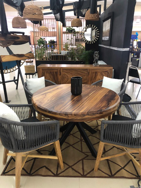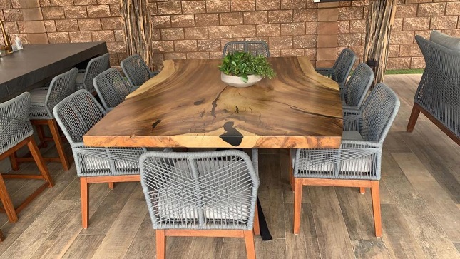 Esta preciosa mesa ideal para EXTERIORES debido a su durabilidad natural en condiciones climáticas extremas y a su bella rareza.