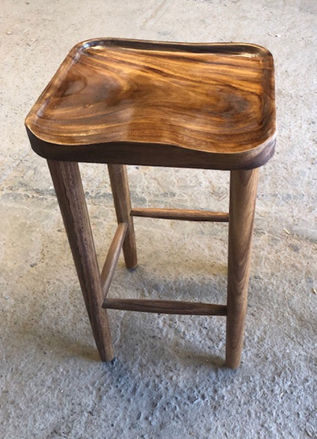 Sencillo y duradero banco torneado de parota, ideal para cuando el espacio es limitado.