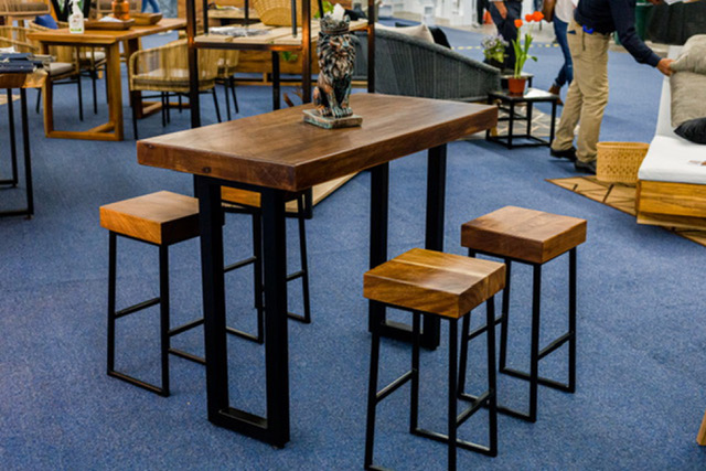 Mesa & Bancos: Superficie en Madera de PAROTA y base en herrería pintada al horno
