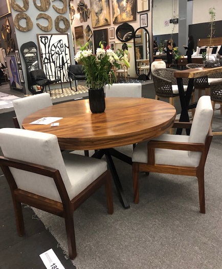 Mesa: Madera de PAROTA. Sillas: Modelo MARIO